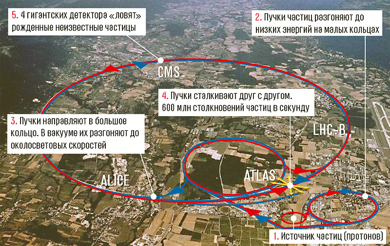 Ну да. По аналогии с морем: чтобы появилась рябь, нужно воду как-то взволновать. То есть приложить энергию. А в ускорителе мы получаем энергию на микроуровне: сталкиваем пучки заряженных частиц. Ускоритель - это кольцо, там в трубе высокий вакуум, куда вбрасываются заряженные частицы, протоны. Их разгоняют почти до скорости света, ускоряют, у них появляется большая энергия. А потом частицы сталкивают лоб в лоб. В месте встречи будут детекторы, так что мы ожидаем увидеть след хиггсовского бозона. Но наверняка все окажется серьезнее, чем мы ждем. Потому что, чем больше энергия удара, тем глубже можно забраться в устройство мира.