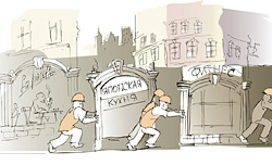 Что касается второго, то оно мне кажется вполне достижимым. Кругом лежит экономическая стабильность, статистика радостно фиксирует всеобщий рост доходов — и зачем же, спрашивается, каждый месяц закрывать магазин деликатесов и открывать на его месте японский ресторан? Чтобы максимум через полгода устроить очередной ремонт с перепланировкой и открыть фитнес-центр? Что сотрясает потребительскую экономику столицы, сдвигая геологические пласты и меняя ландшафт? Чем вызваны массовые банкротства в сфере общественного питания и розничной торговли, которыми только и можно объяснить топографическую неустойчивость? Почему приходится менять место встречи, которое, как всем известно, менять нельзя? Одна из тайн нашего мистического города — он не дает привыкнуть к себе, запомнить лицо.