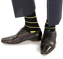 — В классическом направлении этого сезона доминируют бежевый, голубой, коричневый и черный цвета, — рассказывает Сергей Лунин, руководитель мужского направления Bosco di Ciliegi. — Но очень популярны неформальные носки, которые носят с джинсами или обычными брюками, — в полоску, ромбиками, со смешными рисунками и яркими узорами, как, к примеру, у Etro или у специализирующейся на забавных мотивах марке Galo. Одна тенденция — удлинение носков в связи с этикетом: большинство производителей переключаются на гольфы. Лидеры в материалах — мерсеризированный хлопок, а также шелк с добавлением полиамида и лен с хлопком. Другая тенденция — очень модные ныне мужские подследы. Женский вариант, открывающий взгляду щиколотку, вполне уместен под спортивными брюками. Другая иллюстрация этой тенденции — появление, к примеру, у таких марок, как SanPellegrino ортопедических носков, с антиварикозным эффектом для мужчин, которые много ходят или стоят в силу профессии: у таких носков есть градация по денам, как в колготках.