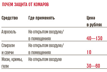 Отпугивающие комаров аэрозоли и кремы — дневное средство защиты. Его по достоинству оценят грибники, огородники и любители прогулок по лесу. Аэрозоли не пачкаются, их удобно наносить на волосы и одежду. Кремом же лучше намазать открытые части тела. Но они очень быстро испаряются в жару. При температуре выше 20°С кремы и мази вместо трех-четырех часов действуют час-полтора. Они плохо подойдут и для любителей спорта: чем больше физическая нагрузка, тем быстрее испаряется репеллент. Новинка этого лета — мази и кремы на основе как натуральных, так и искусственных веществ. А вот популярные в прошлом году полностью натуральные репелленты, например с маслом гвоздики и аниса, спросом уже не пользуются — их эффективность оказалась в разы ниже искусственных