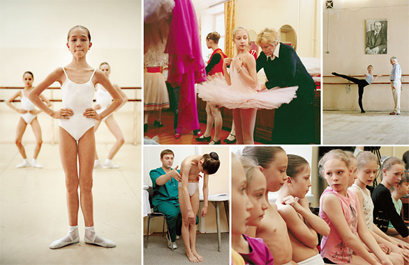 В холле училища толпятся худенькие серьезные дети. Они сами заполняют заявление на прием в академию и смиренно ждут своей очереди на вход. Средний возраст — 10 — 11 лет. В экзаменационный зал их уводят группами по 10 человек. Приемная комиссия должна оценить телосложение: детей повернут лицом, спиной и боком, им будут выкручивать стопы, тянуть ноги — чтобы оценить высоту подъема, шаг и выворотность.