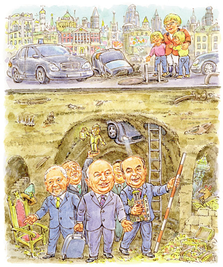 Мэр Москвы предложил свежее решение борьбы с пробками в столице — подземное строительство. По мнению московского градоначальника, под землю необходимо перенести тоннели, развязки и паркинги, а заодно и часть планирующихся к постройке торгово-развлекательных комплексов в центре. Тем более что во всем мире, рассказал Лужков, именно так давно и поступают. Впрочем, учитывая частоту провалов грунта в столице в последнее время, можно предположить, что некоторые автомобилисты рискуют исполнить мечту мэра, не дожидаясь начала строительства. Кто должен радоваться, так это сами строители, ведь подземные работы самые дорогие и выгодные.