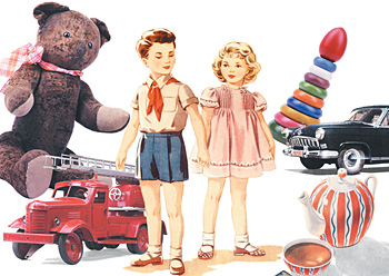 В альбоме «Образ жизни» текста минимум, почти только картинки, но подобраны они таким образом, что все эти радостные лица с обложек «Огонька» и «Работницы», все эти даже не автомобили и товары, а автомобильчики и товарчики, сливаются в один сплошной ряд. Такие они красивые, словно игрушечные: формы округлые, лица счастливые, награды, погоны, солдатики, значки: почему, почему это все нас никак не отпустит?