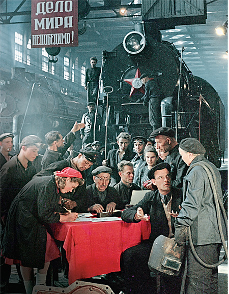 «Рабочие Коломенского ордена Ленина и ордена Трудового Красного Знамени паровозостроительного завода им. В.В. Куйбышева подписывают обращение Всемирного совета мира о заключении Пакта мира»