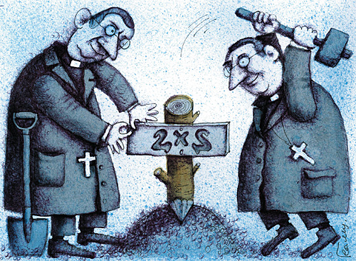 Добилась долгожданного финала подростков протестующая рать: у «Дважды двух»—любимого канала—лицензию не стали отбирать! Мы видели без всяких микроскопов, как конкуренты нагоняли страх: канал погряз во зле, в пороке, и надобно его унять, закрыть, отнять. Привыкли мы к подобному баналу: интрига оказалась на свету. И слух пошел, что в целях госканала мультяшную терзают частоту. Все выглядело грозно и чревато, но поднялась волна, пошла молва… Тогда сказал Сеславинский: «Ребята, не трогайте канала «Дважды два». И радостно, и грустно отчего-то. Какая бы вместила голова, что в функции последнего оплота свободы оказался «Дважды два»? Какой пророк, скажи, какой мессия предугадать бы мог такую связь?! Сто лет назад, когда еще Россия с натруженных колен не поднялась, в досуверенные, крутые годы, когда цвела разруха в голове,—тогда оплотом правды и свободы, естественно, казалось НТВ. Теперь пришла стабильность, это клево. Оплот свободы тихо опустел. А массы почитают Соловьева за новый вольнодумия предел. Сегодня власти сдержанны и хмуры, Отечеством рулит сплоченный клан, и отделяет нас от профессуры последний лозунг: «Приколись, баклан!». Этап свободы Родиною прожит, и все-таки, кого ни опроси,—пока баклан прикалываться может, неистребима вольность на Руси! Мы с «Дважды два», конечно, антиподы, однако их защитники трезвы: пороки человеческой природы живучей добродетелей, увы. Подобный казус многими отмечен, но человек, как сказано, широк—и кто не хочет быть расчеловечен, тот должен опираться на порок. Сегодня нас спасают от диктата не Пушкин, не Толстой, не Жанна д’Арк, что светочами виделись когда-то, а Симпсоны, баклан и «Южный парк». Привычный юморок вокруг анала, гламурных персонажей карнавал—все лучше молодежного канала, который в недрах Думы вызревал. Страна, конечно, с каждым часом краше, во всех своих делах она права, а все же, чем смотреть на ваши «Наши», пускай уж лучше смотрят «Дважды два».