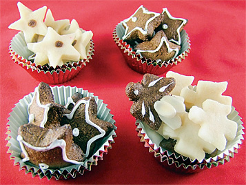 Главное—начать по порядку. Не спешить, составить список в тетрадке. Светлого меду для анисовых пряников, темного—для имбирных, к ним—патоку. Потом миндаль—для марципанов, грецкие орехи, чтобы их золотить, и еще цветной бумаги, мишуры, сусального золота, ванильного сахара, формочки, кисть, съедобные красители, корицу, гвоздику, имбирь, мускатный орех…» Александра давала мне указания по телефону так же размеренно, как она делает все. У нее пятеро детей, она специалист по детским праздникам, а я готовила утренник впервые и страшно боялась, хоть и повторяла вслед за Бродским: «В Рождество все немного волхвы…»