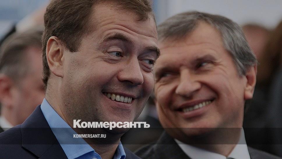 Премьер-министр РФ Дмитрий Медведев и глава «Роснефти» Игорь Сечин