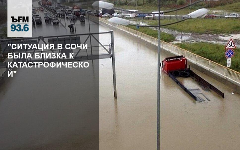 "Администрация города, МЧС, возможно, не объявляет чрезвычайную ситуацию потому, что через два дня в Сочи откроется Международный форум. Ситуация была близка к катастрофической, потому что затопило огромную территорию города Сочи, были подтоплены олимпийские объекты, в том числе дорожно-транспортная инфраструктура.