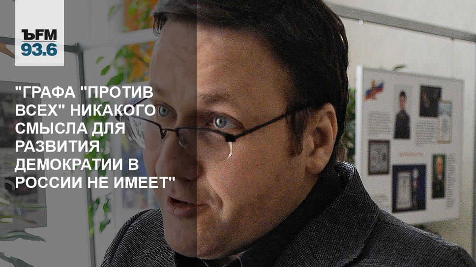 Лично мое мнение — возврат графы "против всех" не нужен, учитывая тот факт, что у нас стало гораздо больше новых политических партий, объем политического предложения гораздо больше, и новые политические реалии не требуют никакого новой графы "против всех", потому что понятно, когда было "меню" скудное, только из семи партий, в этом была бы какая-то логика, а сейчас мы наблюдаем появление большого количества партий и увеличение политического предложения, поэтому графа "против всех" никакого смысла для развития демократии в стране не имеет.