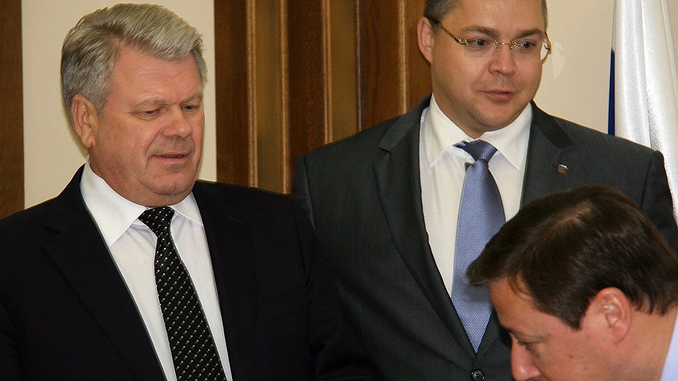 Александр Хлопонин (на переднем плане) объяснил ставропольским депутатам замену Валерия Зеренкова (слева) "молодым" Владимиром Владимировым