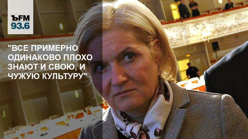 Н.С.: Что касается культурного уровня россиян, вы знаете, не нужно идеализировать то, что было раньше, потому что, если мы с вами думаем, что прямо любой россиянин 30-40-50 лет назад мог вам цитировать страницами "Евгения Онегина", так нет, не мог. Он, конечно, знал, что есть такой великий поэт Пушкин, но дальше его знания, как правило, не заходили. Кстати, не нужно идеализировать знание иностранцев. Если мы думаем, что какой-нибудь обычный британский трудящийся знает русскую или английскую культуру лучше, чем средний российский трудящийся, тоже нет. Все знают примерно одинаково и свою, и чужую, то есть очень плохо.