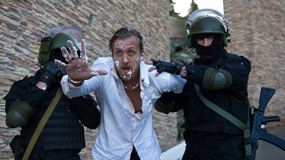 На трагической тамаде, как и на многих столь же нелепых аттракционах, настаивает отчим невесты, бывший десантник, а теперь сотрудник администрации Геленджика, где происходит действие, между тем как сама брачующаяся, работающая в службе протокола газовой компании, имеет свои альтернативные представления о красивой свадьбе (правда, они в итоге оказываются такими же пошлыми, как отцовские, но в другом духе и стилистике). В сущности, если и есть в этом густонаселенном и порой сумбурном фильме главные герои, между которыми происходит основной драматургический конфликт, то это именно строптивая невеста (Юлия Александрова), отказывающаяся петь на своей свадьбе Григория Лепса и Стаса Михайлова, и ее не менее упрямый и эмоциональный отчим (Ян Цапник), между которыми безвольно болтается мягкотелый жених (Егор Корешков) и его младший брат, начинающий снимать на ручную камеру процесс подготовки к свадьбе аж за два месяца до нее. Волевой невестин отчим кидается в камеру камнями, ехидно называет оператора-любителя то Спилбергом, то Михалковым, то Тарантино, а недавно вернувшийся с зоны другой брат жениха (Александр Паль) все время норовит побить человека с киноаппаратом, но тот героически осуществляет свою миссию до конца и один раз даже прямым текстом заявляет о превосходстве человека, который смотрит в объектив, над теми, кто пытается малодушно убежать от его назойливого взгляда: "Ладно-ладно, боженька все видит". Таким образом, в простодушном "Горько!", не претендующем ни на какую философскую глубину, тем не менее, как и в самом глубокомысленном, метафизическом авторском кино, оказывается мимоходом учтено то обстоятельство, что взгляд камеры — это зачастую точка зрения Бога, даже если он не всегда смотрит с облаков или с высоты птичьего полета, а наоборот, то и дело утыкается носом в землю, когда приходится спасаться от разошедшихся свадебных гостей.