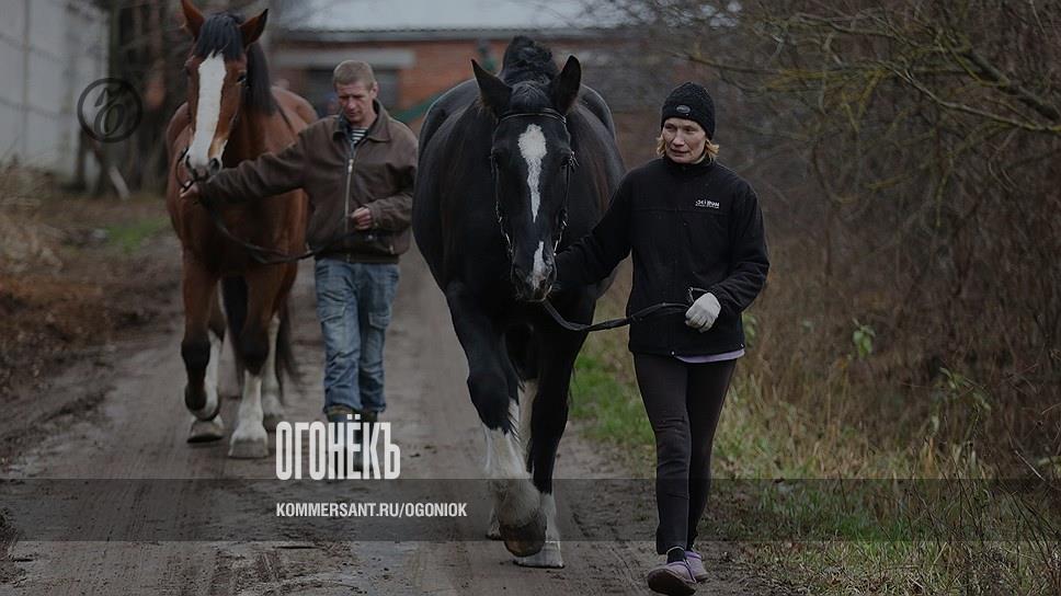 Елена Жилимова — коневод с 30-летним стажем. "У нас работать надо, потому мужчины и не идут,— улыбается она.— А женщины более терпеливые, что ли. Я свою Светлану, дочь, как привела сюда в два годика, так она тут и осталась. Полюбила тоже это дело. Теперь вместе на работу ездим. Семья конюхов". Елена трудилась тут и в страшные 90-е, когда лошади "на веревках стояли", чтобы не пасть от голода. Вот тогда, признается она, было трудно. Плакали все! И года три назад еще было нелегко, конюшне пришлось через газеты обращаться к жителям, чтобы помогли кто чем может: "Отвратительное финансирование было, бескормица, ребрышки у нас просматривались". А сейчас, как с федерального бюджета перешли на областной — выдохнули. "Каждый получает ежедневно 12 килограммов сена, 6 килограммов овса, кило отрубей. Соль и витаминно-минеральные добавки закупили на год вперед. Конечно, хочется побольше яблочек, картофеля, свеклы — если кто предложит, не откажемся. Но в общем все у нас сытые, все блестят! Что еще для счастья надо?"
