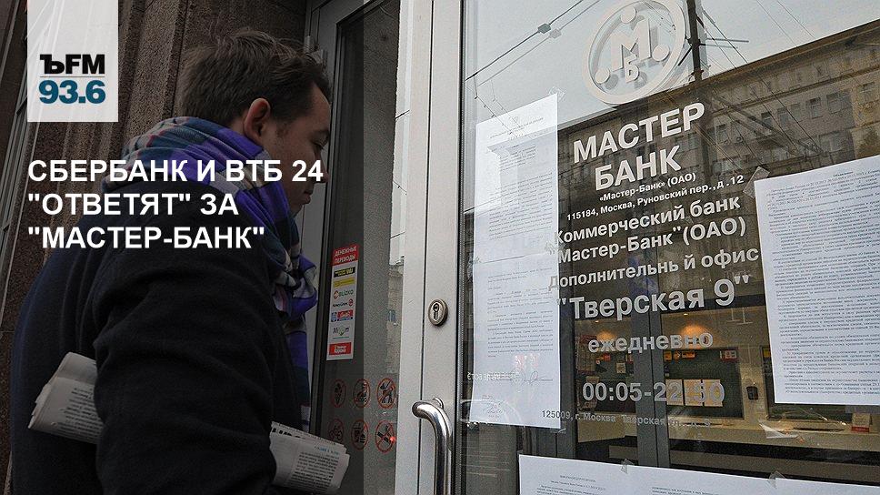 Сбербанк и ВТБ 24 выплатят страховое возмещение "Мастер-банка". Финансовые организации победили в конкурсе Агентства по страхованию вкладов. Прием заявлений на выплаты и возмещение средств начнутся 4 декабря. По данным Центрального банка, объем застрахованных вкладов превысил 31 млрд руб. Сбербанк и ВТБ 24 извлекут большие выгоды, распоряжаясь деньгами чужих вкладчиков, уверен заместитель председателя правления "Ланта-банка" Дмитрий Шевченко.