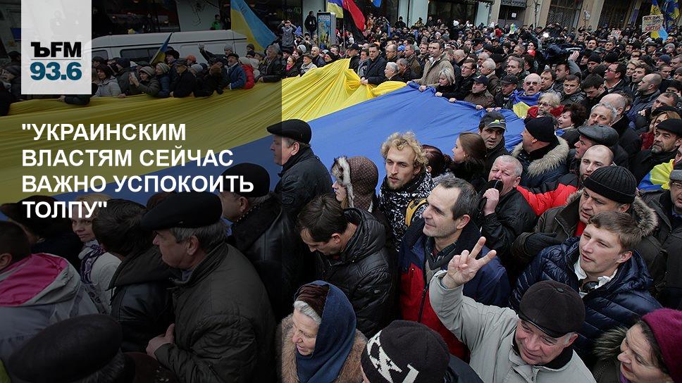 Президент уехал в Китай. По сути дела, всю ситуацию комментировал и разруливал премьер. Посмотрим, как власть сумеет найти виноватого. Реакция со стороны силовых структур была какая-то неадекватная. Очевидно, виноватые будут там. Как это удастся разрулить, не знаю. Но вообще, определенная такая пассионарность на Украине есть, как мы видели в период "оранжевой" революции. Будет трудно.