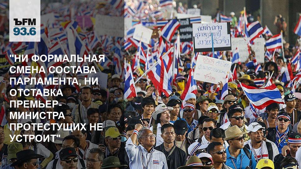 А.М.: Надо отметить, что, по словам Сутхепа Тхыаксубана, лидера протеста, ни роспуск парламента, ни отставка Йинглак Чинават не являются для них достаточным результатом. Они хотят, чтобы силы, поддерживающие Таксина Чинавата, бывшего премьера, перестали оказывать влияние на жизнь правительства. Ни формальная смена состава парламента, ни формальная отставка премьер-министра их не устроит. Опять же, это слова самих протестующих, их лидеров.