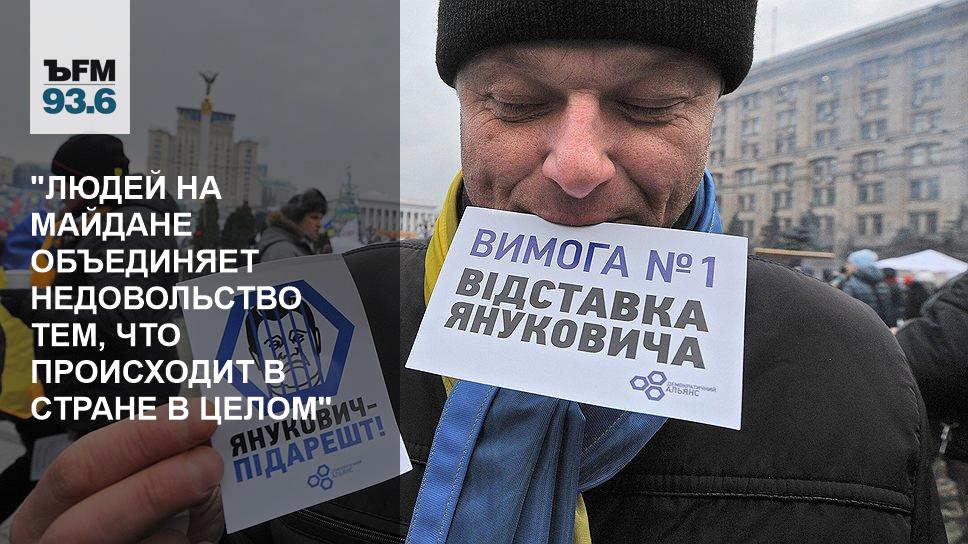 Люди, которые выходили на Майдан в прошлое воскресенье и позапрошлое воскресенье — это уже не обязательно сторонники присоединения или более тесного сотрудничества с Европейским союзом. Это люди, которые возмущены, с одной стороны, силовым разгоном демонстрации, тем, что абсолютно невиновные люди оказываются под стражей и два месяца под арестом. Это люди, которые возмущены избиением журналистов. Более 30 человек, у нас есть список, кто пострадал в этих столкновениях. В конце концов, люди, с которыми мне приходилось общаться последнее время на Майдане, уже выходят просто потому, что кому-то надоел беспредел в судах, кому-то постоянные проверки налоговой, кому-то то, что на Украине сложно открыть и сложно закрыть бизнес, кстати.