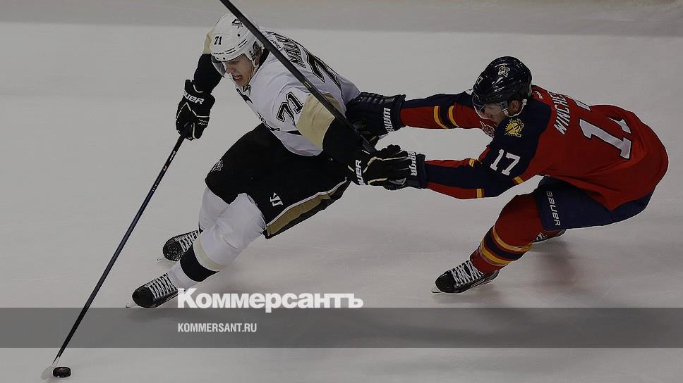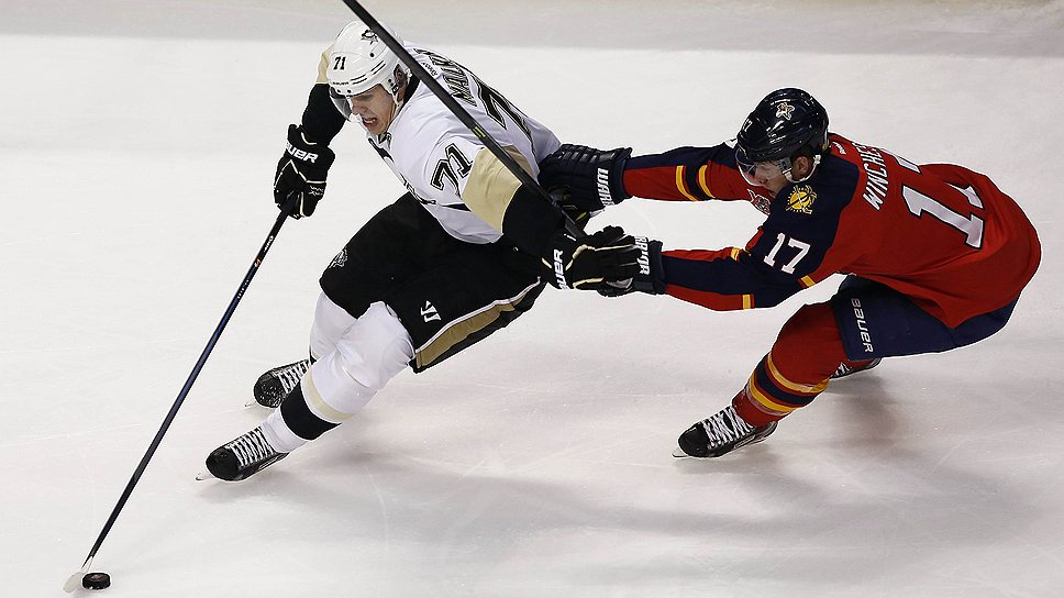 Нападающий «Питсбурга» Евгений Малки (слева) убегает от хоккеист «Флориды» Джесси Винчестера