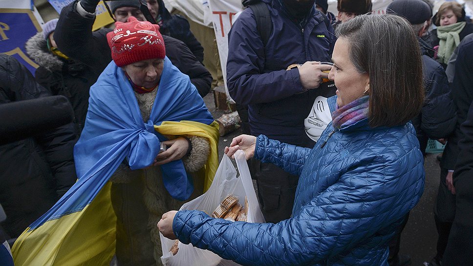 Перед этим Нуланд посетила Майдан Незалежности, где расположились митингующие, а накануне провела встречу с лидерами украинской оппозиции.