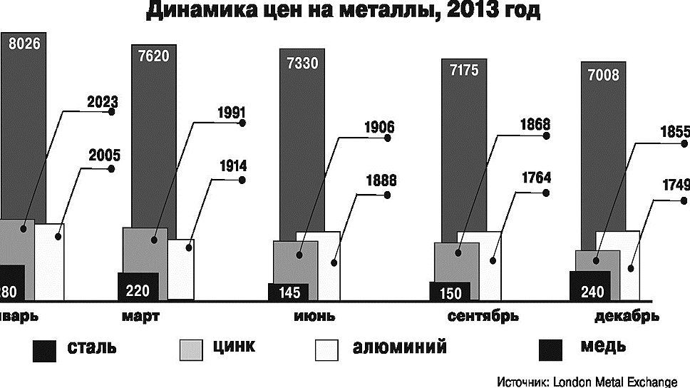 В течение 2013 года рынок металлов демонстрировал негативную динамику цен на продукцию. Так, по данным London Metal Exchange (LME), с начала января к декабрю снизилась стоимость алюминия — с $2 тыс. до $1,7 тыс., стали — $281 до $240, меди — с $8 тыс. до $7 тыс., цинка — $1,9 тыс. до $1,8 тыс. Ситуация на рынке отразилась на финансовых показателях промышленников Челябинской и Свердловской областей. Компании были вынуждены прибегать к ряду неоднозначных решений для оптимизации издержек и повышения уровня рентабельности.