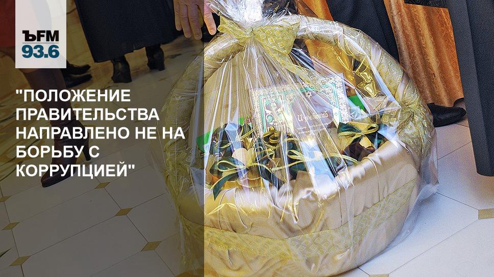 — Если кратко сказать, почему такая инициатива была принята правительством в виде типового положения для всех государственных органов, которые должны его развивать уже для себя, то сейчас по Гражданскому кодексу запрещено брать подарки дороже 3 тыс. чиновникам, но при этом другими законодательными актами, в том числе законом о противодействии коррупции, разрешено брать подарки на официальных мероприятиях и в служебных командировках. Во всех остальных случаях это делать запрещено.