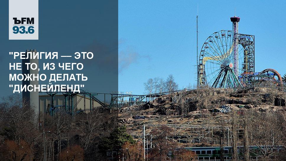 "Это ситуация из "Ревизора" Гоголя. Манилов говорит Чичикову: "А знаете, Павел Иванович, а хорошо бы здесь мостик перекинуть и чтобы на нем сидели купцы и торговали себе". Это профанация. Коммерческий проект, потому что это занижение самого высшего, что есть в человеческой жизни. Религия — это не то, из чего можно делать Disneyland, который здесь предлагается да еще с зарабатыванием каких-то денег", — возмущается он.