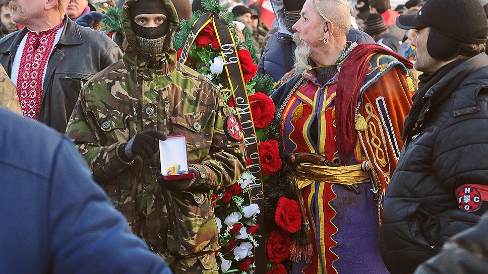 М.Д.: Он должен был два месяца назад освободить Майдан. Он должен был арестовать профессиональных боевиков, которые там находились, придать их гласному открытому суду. И он должен был кардинально изменить свою политику, потому что так воровать, как воруют на Украине, даже в России не воруют. Судя по всему, с одной стороны, ему не хочется прекращать воровство, а с другой стороны, он не может рисковать, вероятно, своими счетами за границей, в европейских странах, которые однозначно поддерживают в том числе и "бандеровцев". Мне очень приятно видеть польское руководство, которое поддерживает "бандеровцев" — потомков тех самых "бандеровцев", которые устроили, например, Волынскую резню, когда было истреблено 80 тыс. неукраинского населения, в основном поляков.