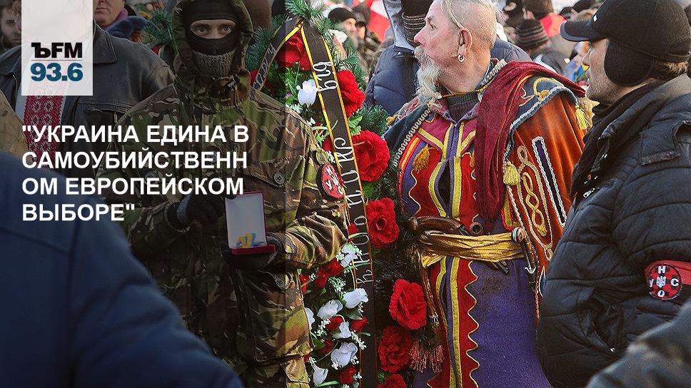 М.Д.: Это уже не кризис, это уже разрушение государства, это исчезновение государства. Люди, которые думают, что Украина разделится — довольно наивные люди. Украина едина в самоубийственном европейском выборе. Они хотят быть в Европе, они не думают о том, что в Европе у них не будет денег, не будет никакой работы, даже посудомойками, не будет никакого будущего. К сожалению, Россия создала такой образ России на Украине, начиная с 2003 года с рогозинской провокации на Косе Тузла, чем толкнула Украину на самоубийство в Европу.