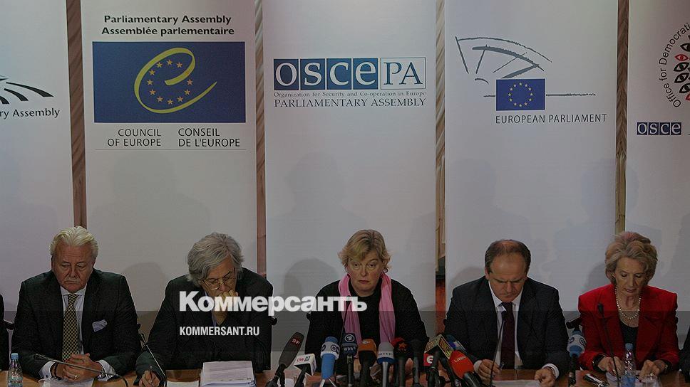 Слева направо: заместитель председателя Парламентской ассамблеи НАТО (NATO) Ассен Агов, руководитель делегации Парламентской ассамблеи Совета Европы (ПАСЕ), лидер группы социалистов в Совете Европы Андреас Гросс, вице-президент парламентской ассамблеи ОБСЕ Вальбурга Габсбург Дуглас, руководитель миссии наблюдения Европейского парламента на выборах в Украине, депутат Европарламента Павел Коваль и руководитель миссии Бюро демократических институций и прав человека ОБСЕ (OSCE) Одри Гловер на пресс-конференции международных наблюдателей за парламентскими выборами в Украине