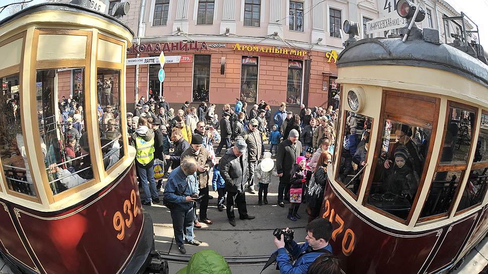 12 апреля на Чистых прудах в Москве состоялся парад трамваев, посвященный 115-летию этого вида транспорта. По улицам прошли вагоны, которые развозили москвичей по улицам столицы десятки лет назад. Гости мероприятия смогли осмотреть салоны трамваев и сфотографироваться на фоне раритетов. Всего на рельсы вышло 17 моделей трамваев во главе с вагоном, который работал еще до революции. В самом конце колонны был пущен современный трамвай, который сейчас только проходит испытания перед официальным запуском.