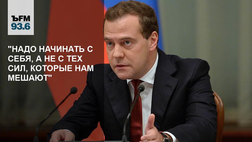 "В целом, мы, конечно, не можем не принимать во внимание политическую составляющую текущего периода", — заявил Дмитрий Медведев. "В определенной степени наши сложности, подчеркиваю, только в определенной степени, обусловлены попытками определенных сил подтолкнуть нас к искусственному кризису", — добавил премьер.