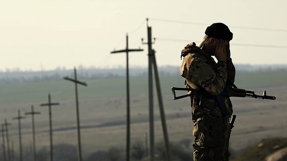 Украинский поселок Амвросиевка, что в Донецкой области, находится в 24 км от пограничного пункта Успенка. Если ехать отсюда по трассе в Россию, то через Матвеев Курган можно быстро добраться до Таганрога и Ростова-на-Дону. О том, что российские военные обозначили свое присутствие на этом участке границы (по ту сторону — в Ростовской области) стало известно несколько недель тому назад (см. "Ъ" от 4 апреля), чуть позже их украинские коллеги ответили тем же.