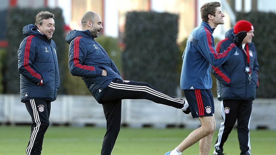 Перед матчами с "Реалом" главный тренер "Баварии" Пеп Гвардиола (в центре) должен встряхнуть потерявших мотивацию игроков