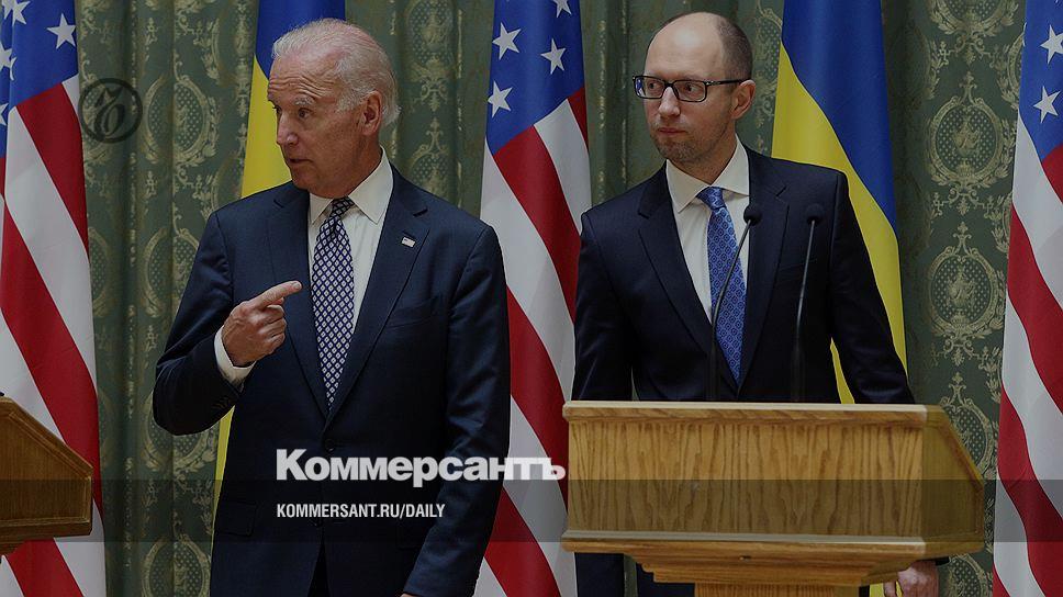 Значительная часть переговоров вице-президента США Джо Байдена (слева) и украинского премьера Арсения Яценюка (справа) была посвящена России