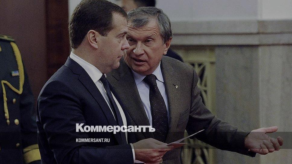 Председатель правительства России Дмитрий Медведев (слева) и президент, председатель правления ОАО «НК "Роснефть» Игорь Сечин