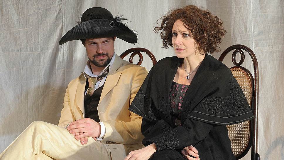 Действие пьесы оказывается вытеснено со сцены в зал. На подмостках же пустота — там старый Фирс еще в прологе произносит финальные реплики пьесы, там танцуют гости на балу, там же старик-слуга падает в конце замертво. А весь обреченный на снос дом перенесен художником Александром Боровским вниз, к зрителям. Как не вспомнить предыдущий чеховский спектакль Додина и Боровского — "Три сестры": там фасад дома Прозоровых постепенно двигался к авансцене, оставляя героям все меньше пространства. Здесь же чеховские персонажи уже совершенно вытеснены пустотой. Посреди партера выгорожено место для биллиардного стола, перед первым рядом кресел в беспорядке стоит какая-никакая обстановка, большая люстра зачехлена, а рядом с ней торчит высокая стремянка — то ли собирались расчехлить к приезду хозяйки, то ли уже приготовились к последнему отъезду. Двери у первого ряда партера поминутно открываются и закрываются, здесь словно сидят на чемоданах, и сразу ясно — приезжают ненадолго. Каждого ждет нечто, что может назваться хоть далеким Парижем, хоть соседним Яшнево, но все они лишь синонимы небытия.