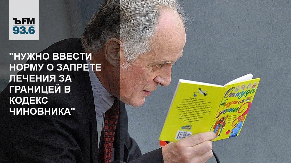 Чиновники не смогут лечиться за границей. Депутат от КПРФ Владимир Федоткин готовит соответствующий законопроект к рассмотрению в конце весенней сессии. Об этом сообщают "Известия". Заместитель председателя комитета Госдумы по охране здоровья Олег Куликов обсудил тему с ведущими Оксаной Барыкиной и Олегом Богдановым.