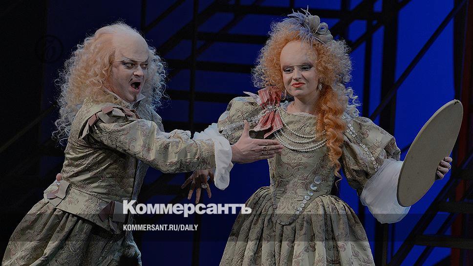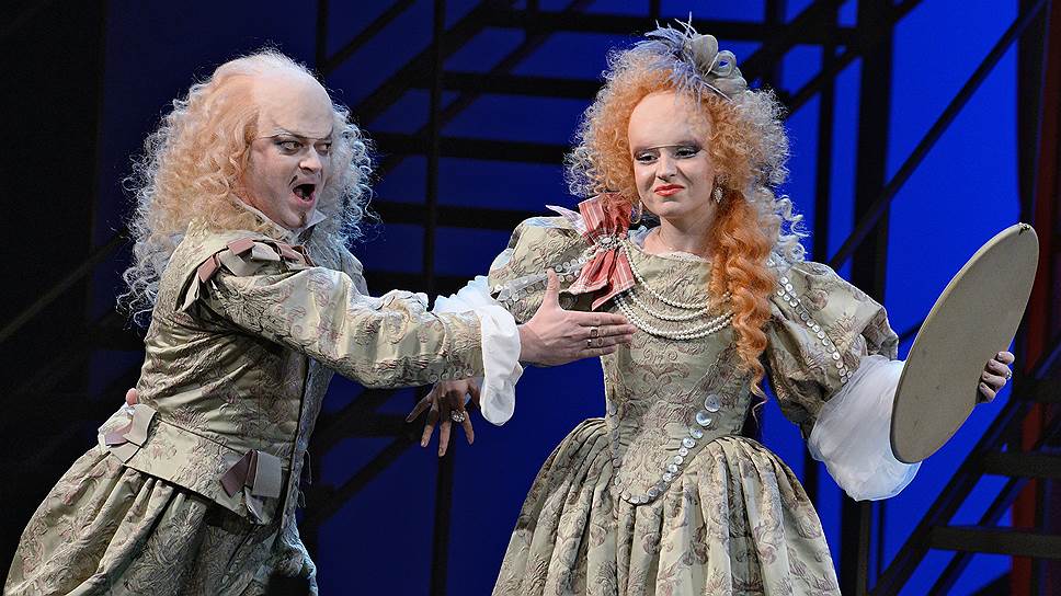 Как бы слабо ни вязался этот жанр с именем композитора, Владимир Мартынов, ознакомившись с либретто, всерьез решил писать именно оперу-буффа. Ну то есть как всерьез — разумеется, с оговорками, что на самом-то деле оперы сейчас писать уже невозможно, разве что в виде аналитических симулякров, "опер об опере", "музыки о музыке". Посулив, таким образом, заманчивое второе дно, композитор, однако, предлагает слушателю очередной парад аллюзий с реминисценциями. Тут и там мелькают лоскутки то Вагнера, то Верди, то Люлли, намеки на Стравинского и Доницетти, на Рихарда Штрауса и мюзикловую попсу. Некоторые стилизованные эпизоды повторяются многократно — например, мажорное аллегро в духе раннего классицизма и фанфарная тема с восходящей гаммой, отсылающая к токкате из "Орфея" Монтеверди. Оркестр, которым дирижирует Дмитрий Юровский, справляется с этим жонглированием, надо признать, довольно ловко. Да и вообще, как развлекательный "концертштюк" партитура, может, и работала бы (хотя не возьмусь ее сравнивать с "Танцами и упражнениями Гвидо" и "Vita Nova"), несмотря на все странности оркестровки. Но сценический оперный спектакль — ноша, которая ей не по силам.