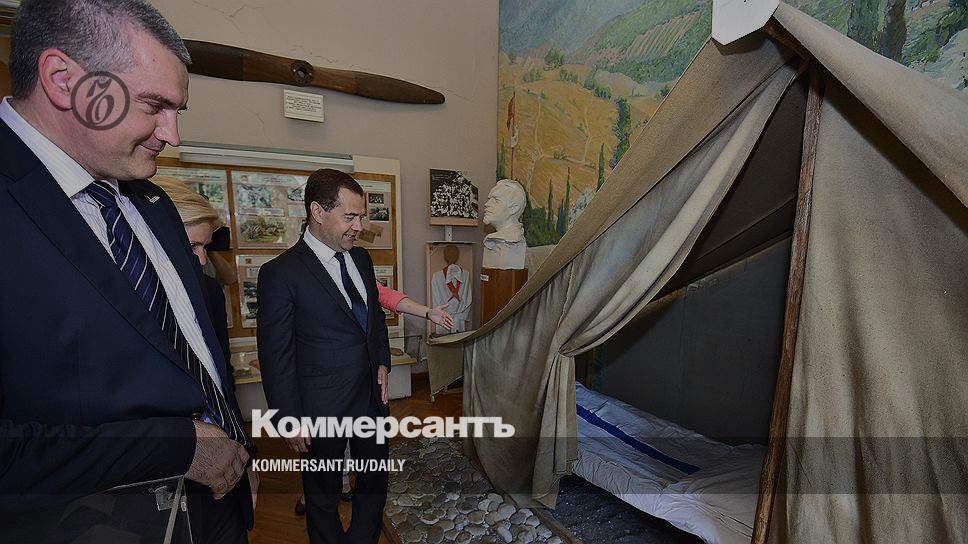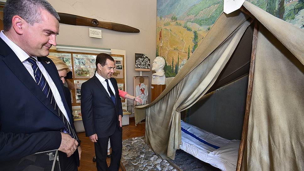 И. о. главы Крыма Сергей Аксенов (слева) и премьер-министр РФ Дмитрий Медведев (справа) воздали должное славному прошлому крымской туриндустрии