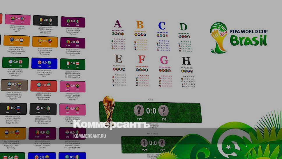Материалы сайта 11.06.2014, 12:30 91K 10 мин. ... Чемпионат мира по футболу-2014 91K 10 мин. ... В Бразилии с 12 июня по 13 июля прошел 20-й чемпионат мира по футболу. Результаты и отчеты о матчах — на сайте «Ъ». ГРУППЫ ПОКАЗАТЬСКРЫТЬ БЛОК МАТЧИ ГРУППОВОЙ СТАДИИ, 13.06.2014 — 27.06.2014 ПОКАЗАТЬСКРЫТЬ БЛОК МАТЧИ PLAY-OFF, 28.06.2014 — 13.07.2014 СКРЫТЬ БЛОКПОКАЗАТЬ 1/8 ФИНАЛА ПОЛУФИНАЛ 1:7 BRA GER ПОДРОБНЕЕ О МАТЧЕ 09.07.2014, 00:00 MSK Белу-Оризонти ПОЛУФИНАЛ 0:0 (2:4 П) NED ARG ПОДРОБНЕЕ О МАТЧЕ10.07.2014, 00:00 MSK Сан-Паулу ФИНАЛ 1:0 GER ARG ПОДРОБНЕЕ О МАТЧЕ 13.07.2014, 23:00 MSK Рио-де-Жанейро МАТЧ ЗА 3 МЕСТО 0:3 BRA NED ПОДРОБНЕЕ О МАТЧЕ 13.07.2014, 00:00 MSK Бразилиа ВСЁ О ЧЕМПИОНАТЕ Матчи группы Картина дня Вся лента Макрон, Мерц, Стармер и Зеленский встретятся в Лондоне 8 декабря Премьер Венгрии Орбан: Евросоюз планирует подготовиться к войне с Россией к 2030 году Axios: Зеленский обсудил с Уиткоффом территориальные вопросы и гарантии Украине Глава МИД Турции: «Хамас» готов передать контроль над Газой «палестинскому комитету» Bloomberg: Индия не намерена полностью отказываться от закупки российской нефти Еще WSJ: США могут воспрепятствовать сделке по покупке Warner Bros. компанией Netflix Обвиняемым по делу об убийстве военкора Рассела Бентли грозят сроки от 1,5 до 15 лет «Зенит» обыграл «Акрон» и возглавил турнирную таблицу РПЛ Фигурист Малинин первым исполнил семь четверных прыжков в произвольной программе Кто сформировал современную финансовую систему страныПартнерский проект Вся лента Новости компаний Все 05.12.2025 АО «Почта России» «Почта России» и почта Индии помогут расширять электронную торговлю между странами 05.12.2025 АО «Банк ДОМ.РФ» Банк ДОМ.РФ кредитует строительство проекта КРТ на Краснобогатырской улице в Москве 05.12.2025 ПАО ДОМ.РФ Девелоперы обсудили тренды цифровизации отрасли в России 05.12.2025 ПАО «ВымпелКом» «Билайн» запускает новый формат защищенного корпоративного мессенджера eXpress Лента Загрузка новости... Загрузка новости... Загрузка новости... Загрузка новости... Загрузка новости... Загрузка новости... Загрузка новости... Загрузка новости... Загрузка новости... Загрузка новости... Загрузка новости...
