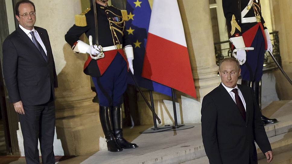 Около полуночи по московскому времени Владимира Путина принял президент Франции Франсуа Олланд. Встреча продолжалась более полутора часов. По ее итогам президенты не сделали каких-либо заявлений, но, как отмечают информагентства, «тепло простились на крыльце Елисейского дворца».