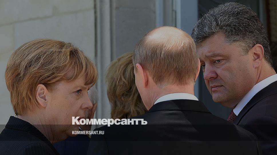 Слева направо: канцлер Германии Ангела Меркель, президент России Владимир Путин и избранный президент Украины Петр Порошенко