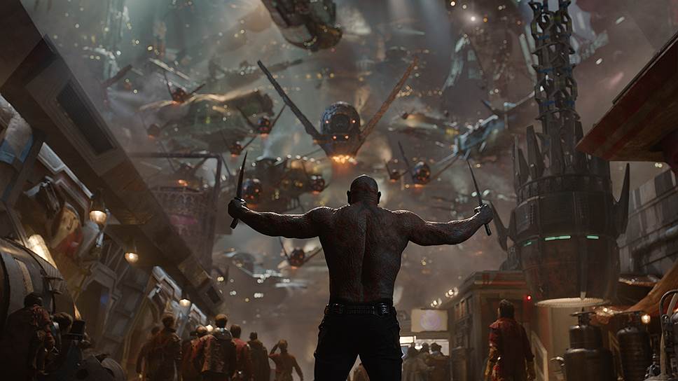 Менее известные по сравнению с марвеловскими хедлайнерами типа "Мстителей" "Стражи галактики" на самом деле изначально никакие не стражи, а просто шайка из пяти темных личностей, временно объединенных своими личными, в основном меркантильными интересами, но постепенно втягивающихся в спасение галактики и вступающих между собой в бескорыстные отношения. "Стражи галактики" сделаны по принципу максимального покрытия целевой аудитории, чтобы каждому было с кем идентифицироваться: мальчикам и девочкам, умным и глупым, добрым и злым, холерикам и флегматикам, младенцам и пенсионерам, свободным художникам и менеджерам среднего звена. Исходя из этого авторы берут по чуть-чуть отовсюду — из различных фильмов, которые уже многим нравились раньше,— и составляют этакий awesome mix, как написано на кассете с хитами 1970-х, крутящейся в старинном уокмене у человеческого участника команды стражей (Крис Пратт). Это межпланетный авантюрист в пижонской курточке, гибрид Индианы Джонса и Хана Соло, но имеющий гораздо более безобидный хипстерский вид, чем Харрисон Форд. Украденный им в начале фильма артефакт — серебристый шар неизвестного назначения, за которым охотится вся галактика,— служит макгаффином, приводящим в действие сюжет.