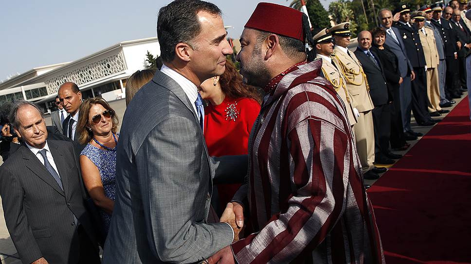 Король Марокко Мохаммеда VI (справа) попросил защиты от испанской полиции у короля Испании Филиппа (слева)