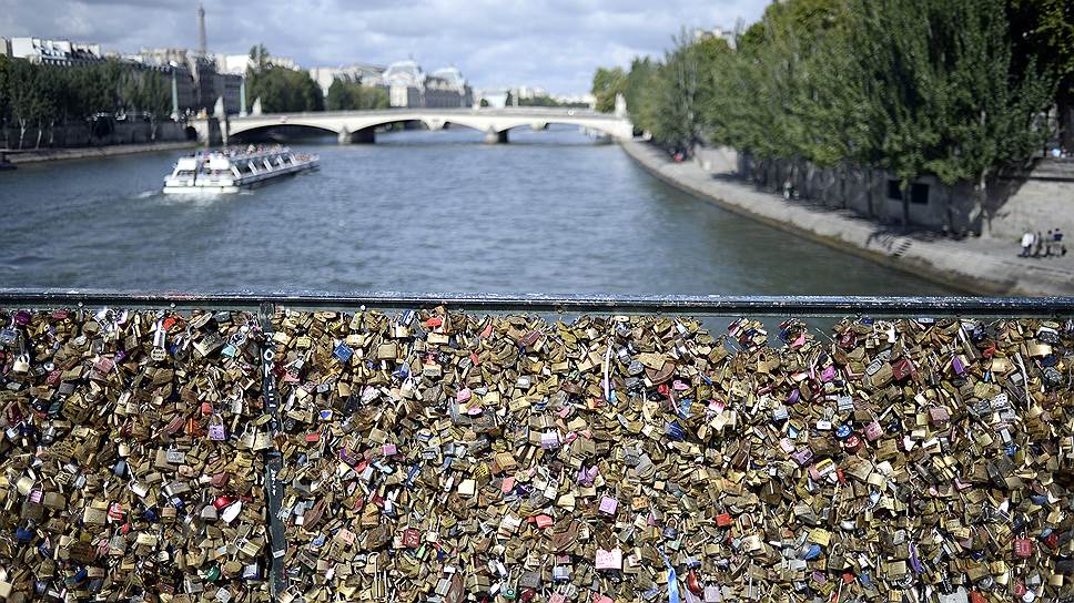 Кому романтическая традиция, кому серьезная проблема. Власти Парижа бьют тревогу — привычка молодоженов скреплять свой брак висячими замками всерьез угрожает городским мостам. Особенно страдает запечатленный на фото Мост искусств. Немудрено, ведь новорожденные ячейки общества облепили замками не только его перила, но даже фонари и ограждения прилегающих набережных. Одна из секций изящной решетки моста в июне уже обвалилась под не предусмотренной в проекте тяжестью.