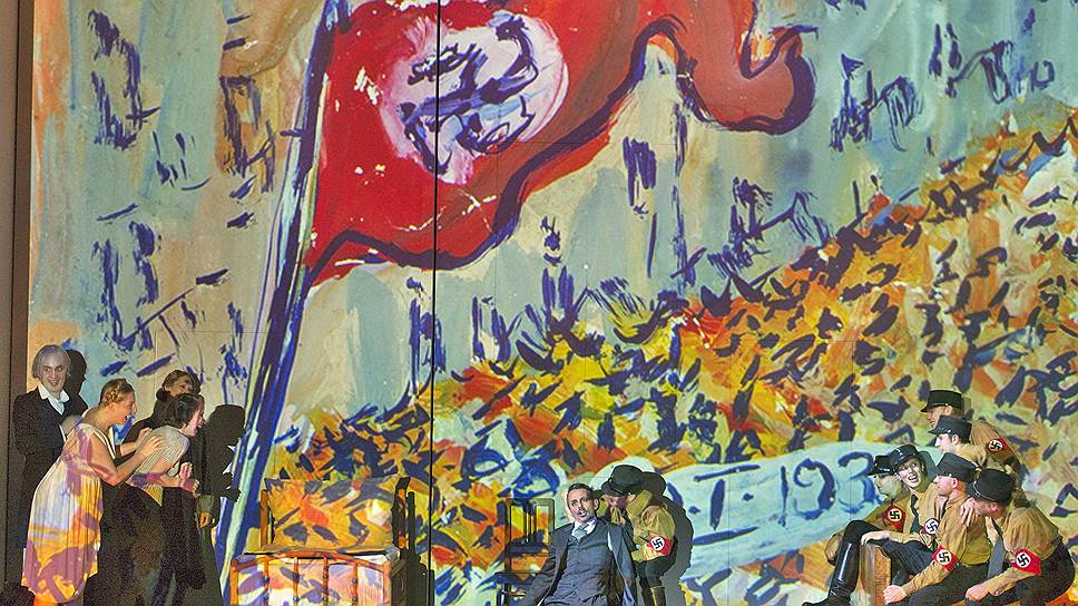 Наверное, идеальную оперу на основе цикла Шарлотты Саломон мог бы написать ее старший современник Альбан Берг, и, кстати сказать, в финале оперы Дальбави, где Шарлотта в припадке отчаяния убивает родного деда при помощи отравленного омлета, действительно чудится нечто берговское. Если уж продолжать фантазировать, то Берг бы наверняка экспрессионистское повествование о душевных смутах условной Шарлотты изложил с жестким диктатом формы, а вот у Дальбави ничего подобного нет. Его партитура (которую исполнял оркестр зальцбургского Моцартеума под управлением автора) — водянистая взвесь изысканных "музыкальных моментов", по эмоциональной температуре довольно умеренная, да и драматургически тоже порядком зыбкая. В ней случайными островками плавают цитаты: и "Хабанера", и баховские кантаты, и "Волшебный стрелок", и французские народные песни, и фольклор на идише. Они слегка препарированные, правда, но все равно из-за их обилия и элементарной иллюстративности изысканным приемом их не назовешь. Тем более что именно эти заемные мелодии и оказываются самыми заметными вокальными номерами оперы, в остальном же вокальный материал представляет собой честные речитативы. Не шпрехштимме, нет, тем более что либретто написано в основном по-французски. Главное исключение — немецкоязычная разговорная роль "от автора", которую исполнила венская актриса Йоханна Вокалек. Ее альтер эго, Шарлотта Канн,— партия уже вокальная, доверенная молодому меццо-сопрано Марианне Кребасса, которая стала главным украшением спектакля наряду с тенором Фредериком Антуном (Амадеус Даберлон, возлюбленный Шарлотты).