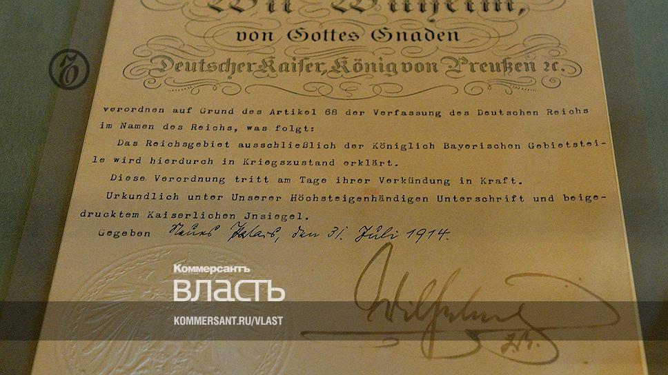 Объявление военного положения с 31 июля 1914 года за подписью Кайзера Вильгельма Второго