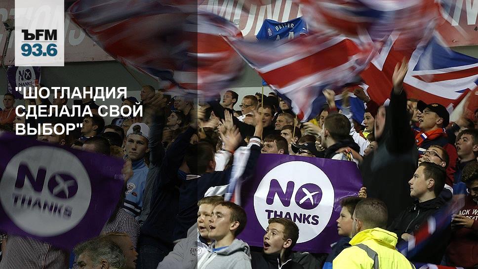 — Шотландия сделала свой выбор. Политика — это всегда процесс выбора из иногда большого количества опций, но чаще всего количество опций сводится к двум: либо мы поступим так, либо поступим иначе. И вся политика заключается в том, что в условиях, когда мы не знаем, как поступить правильно, мы все равно делаем выбор. То же самое сейчас сделала Шотландия: они сделали свой выбор. Они хотят остаться в составе Соединенного Королевства, несмотря на то, что они особые. Они хотят за это получить какие-то привилегии, может быть, больше привилегий по сравнению с другими частями Великобритании — Ирландией и Уэльсом. Может быть, они хотят просто жить, как жили, но, так или иначе, они сделали свой выбор. Это прекрасно, что у людей есть право выбора.