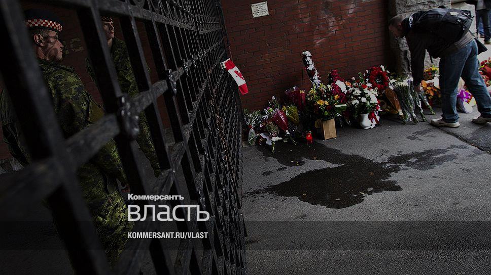 Парламенты крупных западных государств редко становятся местами совершения терактов. В минувшую среду подобное произошло в Оттаве: террорист-одиночка устроил стрельбу в центре города. Началось все у Национального военного мемориала — памятника канадцам, погибшим в мировых войнах и вооруженных конфликтах последнего времени. Некто одетый во все черное и с замотанным платком лицом открыл огонь по солдатам почетного караула. Один из них погиб. После этого преступник бросился в здание канадского парламента, где в это время находился премьер-министр страны Стивен Харпер. Полиция окружила район Парламент-хилл, провела эвакуацию членов парламента и сотрудников его аппарата. Преступник был обнаружен и в ходе перестрелки убит. Полиция и секретные службы еще несколько часов обыскивали Парламент-хилл и прилегающие к нему районы, отрабатывая версию о том, что террорист был не один. Однако больше никого обнаружить не удалось.