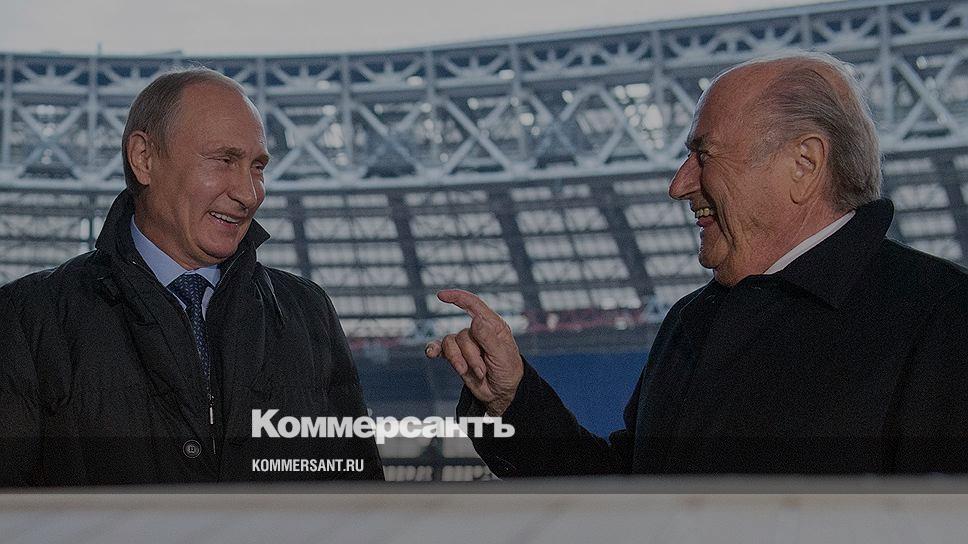 Президент России Владимир Путин (слева) и президент Международной федерации футбола (FIFA) Йозеф Блаттер